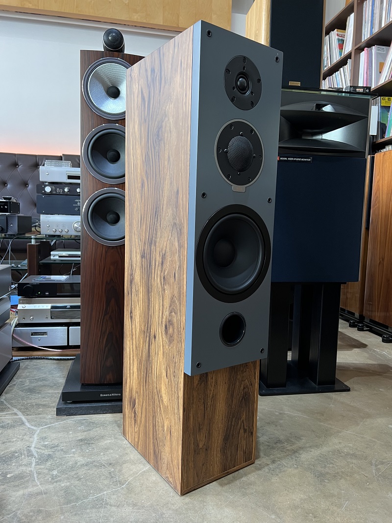 무늬목 마감의 단단하고 고급스러운 인클로저에 1인치 패브릭 돔트위터와 2인치 미드레인지, 8인치 우퍼를 장착한 정통 3웨이방식의 스피커입니다.